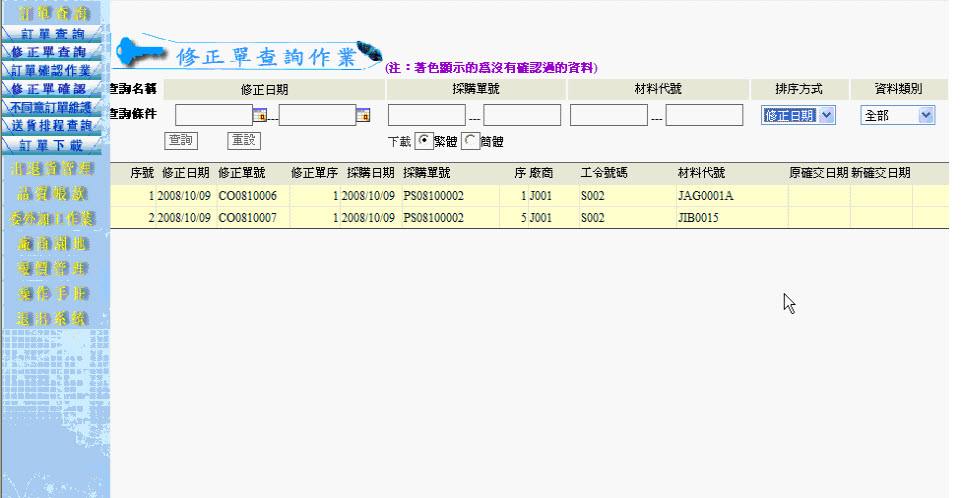 作業目的: 在功能選單中點擊「修正單查詢」後,則進入修正單查詢作業,如下圖。